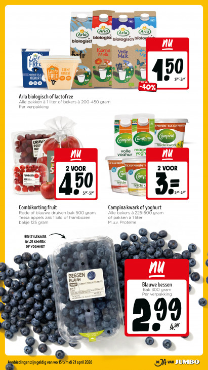 Deze tekst wordt automatisch gegenereerd, dus deze kan fouten bevatten.zt Ge ee Arla) ” biologisC L;o1ogisch Piologissis biologisct CAN NIN Volle Half \\ Ar Le À | Melk Lact FREr D + D) EN STIJL „0 TU 14 ® 1. (es) Arla biologisch of lactofree Alle pakken à 1 liter of bekers à 200-450 gram Per verpakking On > aie ANNO 187 DRUNF' 40 (amp NNo 187] a magere „, ROOD Fa à milde kwark mage 5006 volle voahu r yoäh Kiss BAR hb 2 VOOR a: 2 VOOR \ FRAMBOZEN mag milde & a à Le v0 "Milde k a 6 5: Oz Combikorting fruit Campina kwark of yoghurt Rode of blauwe druiven bak 500 gram Alle bekers à 225-500 gram Tessa appels zak 1 kilo of frambozen of pakken à 1 liter bakje 125 gram M.u.v. Proteine BEST) LEKKER N NN IN JE KWARK — _ : u gn Kk Pa NW, OF YOGHURT Fan 2 le A BESSEN (@ En, ee BLAUW apen mar PO yn MAND op oroeup senaat Blauwe bessen | VC-34-G Bak 500 gram hd u li Oorsprong, NL SUN: 8 3801000 Per verpakking erpakt door: À 4 6 47 Q @ B dien zijn geldig van wo 15 t/m di 21 april 2026 DE) van | U,/ 1550