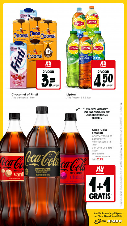 Deze tekst wordt automatisch gegenereerd, dus deze kan fouten bevatten.ns États = eum 6 La Br — e) An 10 R N ICE TE Gain. DE ENIGE ÈC RICETÉ Chocomel DE ENIGE ECHTE rachel DE ENIGE ÈCHTE SUGAR Ker SUGAI 0% 1 a 2 | ES Q N 1) SUIKES La: zr Chocomel CAS Original À [ GREEN ERO „Dt DE et ia vr ve 2 VOOR 2 VOOR = 3 mr as v0 OO, OU ad O5: 6 s-- Chocomel of Fristi Lipton Alle flessen à 1,5 liter Alle pakken à 1 liter NOG NOOIT GEPROEFD? MET DEZE AANBIEDING KUN m JE ZE EENS VOORDELIG PROBEREN Coca-Cola smaken N \ \ Cherry, vanilla of N caffeine vrij Alle flessen à 1,5 liter Bijv. Coca-Cola zero sugar zero cafeïne 2 flessen à 1,5 liter CA zero affeinc gn, EA zer zero sugar zero sug } ASK lories un , u = rm Tr with cherry taste ed | 1 4:4 GRATIS Ua/IIY2SJ84 sflidjee10] sp ue e1jeulquos 484 :do 387 ‘AfeBouu serjeuIquos aj|y ‘s1e16 j2npold e13x8 [ of Buenguo Jonpord | UEA JeUDsuee (Iq | | Aanbiedingen zijn geldig van | wo 29 april t/m di 5 mei 2026 2A VAN _) U, |