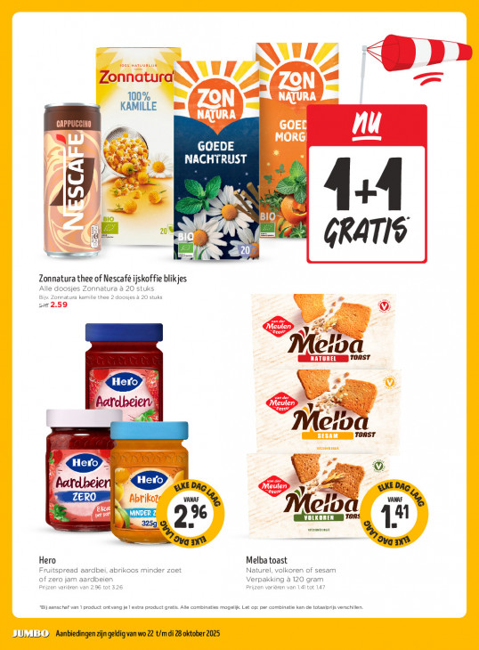 Deze tekst wordt automatisch gegenereerd, dus deze kan fouten bevatten.” m vz 9)» Er N Zonnaturde\ ON NATURA KAMILLE m ZON GOEL MORG! nu su He) GOEDE NACHTRUST NS | Bl mad Bil pr GRATIS Zonnatura thee of Nescafé ijskoffie blik jes Ale doosjes Zonnatura à 20 stuks atura kamille thee 2 doosjes 8 20 stuke Le 2 g WED Ne 1 TOAST Hero Se TOAST Hero AdT OUR LS ZERO Abrikote y VANAF un nl La TORS, 4 net 2, =” Want a1 Want Hero Melba toast Fruitspread aardbei, abrikoos minder zoet Verpakking à 120 gram Naturel, volkoren of sesam ke zero lam aardbeien ot 526 tot 147 Bij aanschaf van 1 product ontvang je extra product gratis. Alle combinaties mogelik. Let op: ps mbinatie kan de totaalprij I JUL U Aanbiedingen zijn geldig van wo 22 t/mdi 28 oktober 2025