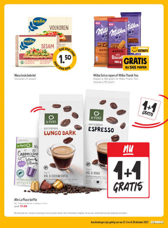 Deze tekst wordt automatisch gegenereerd, dus deze kan fouten bevatten.wasa, NEU DL VO LKOREN mio ie fi wet Ps SESAM | … | AE Dag, \-/ EXTRA'S | KC) Bíscofl Sa ni 1.50 b) 1908 GRATIS Want BIJ 545 PUNTEN Wasa knäckebröd Milka Extra repen of Milka Thank You Volkoren of sesam Repen à 190 gram of Milka Thank You doosje à 10 gram Se 3 KOFFIEBONEN as 7 | “as KOFFIEBONEN Î IZA © ESPRESSO LUNGO DARK 60. 10x — nu a &fomig, kg WOL & ROND a u i ds EUENWI CII DIU CEBR AU ARADIEA DONEN MEBIN eEnnaoe vann HUE ELA LE “a GRATIS Alle La Place koffie Bijv. Espresso bonen 2 zakken à 1 kilo 346 17.49 “Bij aanschaf van 1 product ontvang je extra product gratis. Alle combinaties mogelijk. Let op: per combinatie kan de totaalprijs verschilen. Aanbiedingen zijn geldig van wo 22 t/mdi 28 oktober2025 ) U, 3. U