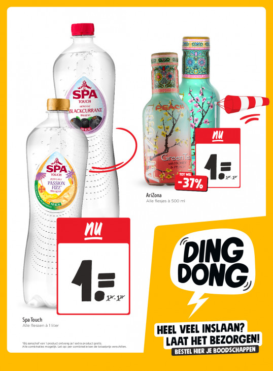 Deze tekst wordt automatisch gegenereerd, dus deze kan fouten bevatten.a a A EC + TOUCH NH m LACKCURRANT PENLLANT Ee REX | ke SP | id == nu Gree EN TOUCH MO WEL BCTIILANT en 6: \ PASSION ie "37% Hi ve AriZona ra Alle flesjes à 500 ml nu ë DING DONG 6:- = Spa Touch Alle flessen à 1 liter HEEL VEEL INSLAAN? Anden aa er pr vang je extra produc Hill LAAT HET BEZORGEN!
