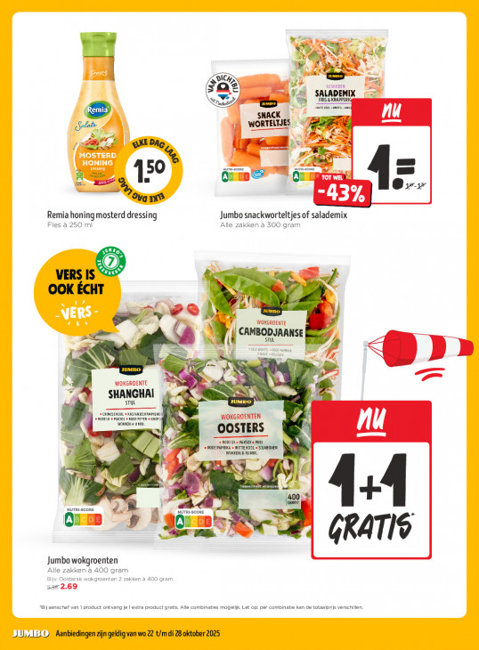 Deze tekst wordt automatisch gegenereerd, dus deze kan fouten bevatten.> as £ IC, ne GESNEDEN me el kl SALADEMIX FRIS&.KHAPPERI a ED mon m ol nu Sela wortius | 7 N) JONING Dresing 50 numscone 2 ET 6: Want Remia honing mosterd dressing Jumbo snackworteltjes of salademix Fles à 250 ml Alle zakken à 300 gram TR VERS IS OOK ÉCHT m 2 zee I er WOKGROENTE y u a ( | Ee er tn AD IL US (à N WOKGROENTE AS SHANGHAI N STIL ET chere « astéecanensu0 ’ RODEUL «PAL» RUE PCR OF] WOKGROENTEN vorsers ann. OOSTERS nu ODE PAPRIKA « WITTEKDAL » SOIRBONEN ROOT UI PASO PREI 7 277 7 rar = N. ré EEE 400 2} NUTRI-SCORE le RE 7. Le 30: GRATIS Jumbo wokgroenten Alle zakken à 400 gram 52# 2.69 Bijv. Oosterse wokgroenten 2 zakken à 400 gram “Bij aanschaf van 1 product ontvang je extra product gratis Alle combinaties mogelijk. Let op: per combinatie kan de totaalprijs verschilen. JUL U Aanbiedingen zijn geldig van wo 22 t/m di 28 oktober 2025
