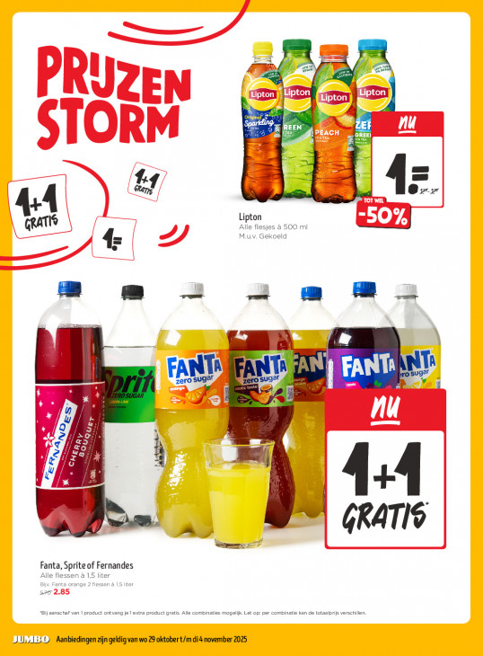 Deze tekst wordt automatisch gegenereerd, dus deze kan fouten bevatten.& RU toi ipton EN HAN LEF nu OR 2= SREEI ST > LI © TOT WEL Lipton Alle flesjes à 500 mi 1272 M.uv. Gekoeld 2 MR TA NT 3 al TN LL NT sugar FA zero sugar sugar Sh Pi 1 nu p 2 à a E | á À m" = AAJ GRATIS es Alle flessen à 1,5 liter Fanta, Sprite of Fernandes Bijv. Fanta orange 2 flessen à 15 Iker 520 2. “Bij aanschaf van 1 product ontvang je extra product gratis Alle combinaties mogelijk. Let op: per combinatie kan de totaalprijs verschilen. JUL U Aanbiedingen zijn geldig van wo 29 oktober t/m di4 november 2025