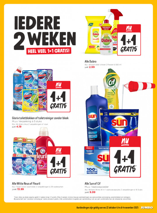 Deze tekst wordt automatisch gegenereerd, dus deze kan fouten bevatten.IEDERE LL Bubro ub Du WEKEN ide) 4:4 rme, ®| GRATIS Alle Dubro Bijv. Afwasmiddel citroen 2 flessen à 550 ml 528 2.99 Na y on 0 *) LI 4 Cieanboos 5 7 CRE) let LA 414 JN Porc JE GRATIS um (le) Glorix toiletblokken of toiletreiniger zonder bleek sun M.uv. Verpakking à 5 stuks Bijv Iok citrus 2 verpakkingen à1 stuk u 826 419 OR m MN 7 Le I m En 70m € Ai x D nu 14 DT ER BEAC LI B leu Ad nt an gang 414 00% Se 5 FECTIVE GRATIS En > er u GRATIS Alle Witte Reus of Fleuril Alle Sun of Cif Bijv. Fleuril Color wasmiddel 2 verpakkingen à 29 wasbeurten M.uv. Vaatwaspoeder 2228 13.99 Bijv. Briliant Shine All in 1 vaatwascapsules 2 verpakkingen à 16 Stuks 1928 9. “Voor alles op deze pagina geldt: 2 weken lang 1#1 gratis. Elke 2 weken vind je nieuwe aanbiedingen op persoonlijke verzorging, wasmiddelen en reinigers Bij aanschaf van 1 product ontvang je 1 extra product gratis. Alle combinaties mogelijk per aanbieding. Let op: per combinatie kan de totaalprijs verschillen Aanbiedingen zijn geldig van wo 22 oktobert/mdi 4november 2025 _J1),,1:30