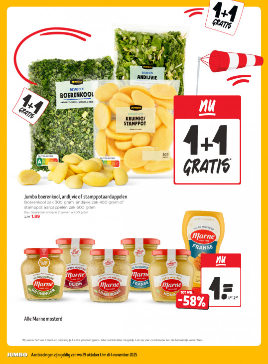 Deze tekst wordt automatisch gegenereerd, dus deze kan fouten bevatten.4: 2 7 5 si ij N jy + ie >] Fin) GESNEDEN tr ANDIJVIE 7 GESNEDEN BOERENKOOL An FOREN. OK BR AARDAPPELEN nu e KRUIMIG/ STAMPPOT us en Ne À 3 Bir 3 600 NUTRI-SCORE NUTRI-SCORE [me FE CB GRATIS pa 3 Jumbo boerenkool, andijvie of stamppotaardappelen Boerenkool zak 300 gram, andijvie zak 400 gram of stamps t aardappelen zak 600 gram Bi. Gi en andijvie 2 zakken à 400 gram 328 1 \neDEMOsTaz, Marne EE FRANSE js En à U ene MOST, DE MOSTER NE MOST Marne Mar ES sn TE no FRANSE 224 Marne DIJON Mar gl UD en TOTWEL QT MEURC® HONIN + nn a -58) Alle Marne mosterd “Bij aanschaf van 1 product ontvang je extra product gratis Alle combinaties mogelijk. Let op: per combinatie kan de totaalprijs verschilen. JUL U Aanbiedingen zijn geldig van wo 29 oktober t/m di4 november 2025