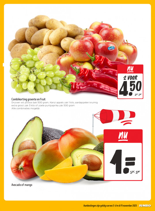 Deze tekst wordt automatisch gegenereerd, dus deze kan fouten bevatten.dk nzi an ” ve nu 27 ré x? 50 CE = 50 Combikorting groente en fruit Druiven wit pitloos bak 500 gram, Kanzi appels zak 1 kilo, aardappelen kruimig extra groot zak 3 kilo of zoete puntpaprika zak 500 gram Alle combinaties mogelijk nu 38 a FR on; ma Avocado of mango Aanbiedingen zijn geldigvanwo5 t/mdif1november 2025 ) U, 55 U