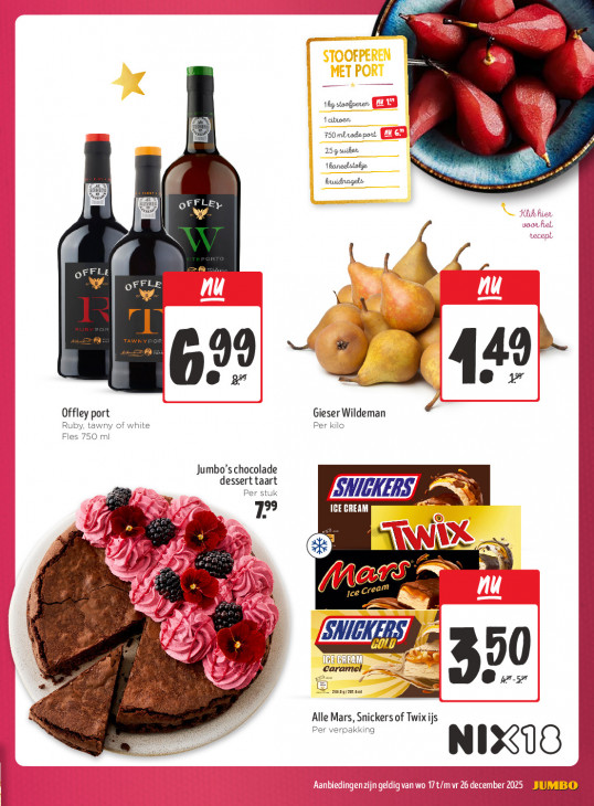 Deze tekst wordt automatisch gegenereerd, dus deze kan fouten bevatten.een fg stoofperen 1 citroen 750 mode port 25 gite Hhaneelstohje Fn ad OFT Er OFFLE OFFLE { N IE LL Pe Fr 99! - ® ’ Gieser Wildeman Offley port Ruby, tawny of white Per kilo Fles 750 ml Jumbo’s chocolade dessert taart Per stuk SMIC KERS) IGE CREAM \ 7 K. AB Gh (ce cre@! Du ; SMS) > wamel u 520 Alle Mars, Snickers of Twix ijs Per verpakking NIKO JUMBO