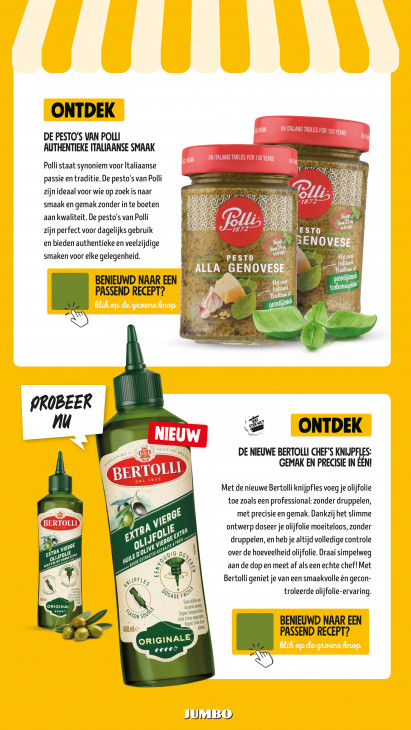 Deze tekst wordt automatisch gegenereerd, dus deze kan fouten bevatten.ONTDEK mm DE PESTO'S VAN POLLI ON ITALIANS TABLES FOR 150 YEARS Wii AUTHENTIEKE ITALIAANSE SMAAK ON ITALIANS TABLES FOR 150 YEARS A An - mp Polli staat synoniem voor Italiaanse Je Le? 2 er % passie en traditie. De pesto's van Polli Er a zijn ideaal voor wie op zoek is naar WJ ] Le AT C7? smaak en gemak zonder in te boeten P R 7872 D Je ij u R ÿ aan kwaliteit. De pesto's van Polli f) | Fa 2 Bl 4 zijn perfect voor dagelijks gebruik Dan 'ESTO 2 en bieden authentieke en veelzijdige ENOVE Fa Ne mn smaken voor elke gelegenheid. 1737) Pe. EN GENOV ng BENIEUWD NAAR EEN 8 en PASSEND RECEPT? Ce x CO sr 2 Vi =. = er ar PROBEER nu + De EN El \ kun ONTDEK NIEUW so} OLIVE ong DE NIEUWE BERTOLLI CHEFS KNIJPFLES: ot GEMAK EN PRECISIE IN ÉÉN! AN pat EE — Met de nieuwe Bertolli knijpfles voeg je olijfolie toe zoals een professional: zonder druppelen, A eld met precisie en gemak. Dankzij het slimme K BERTOLLI # "L, ontwerp doseer je olijfolie moeiteloos, zonder 2 - a 1% £ A) druppelen, en heb je altijd volledige controle >> vl rn fo NL y! gn® re” 14 24 ot over de hoeveelheid olijfolie. Draai simpelweg | nn au puike B SI Dos pl aan de dop en meet af als een echte chef! Met Us, Ÿ 2 4 Fles Bertolli geniet je van een smaakvolle én gecon- Ge N % © troleerde olijfolie-ervaring. kml au rfi en ORIGINAL VTT de ere ges Aco SD \ “pire ul ue done ve ld gro: bami BENIEUWD NAAR EEN mic. Ko N PASSEND RECEPT? ORIGINALE PN NA JU,,150