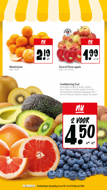 Deze tekst wordt automatisch gegenereerd, dus deze kan fouten bevatten.ICA me x- de vn +3 [9 | 99 6 2: 6 2#-2# ze N Mandarijnen Tessa of Elstar appels Net 1 kilo Zak 1 of 1,5 kilo BEELEN, = Se tal Combikorting fruit Jen Avocado schaal 2 stuks, Zespri kiwi Green of Gold schaal 5 stuks, Fijnproevers bloedsinaasappel net 1 ge PCR kilo of blauwe bessen bakje 125 gram LCL i% Se 4 n 5 PR = nn, 4 = Le 8 RS / S= nr N Rx N 2 VOOR \WZ 3 OE VO ? Ó ij mn 4 VAL y LUN À FR 7 à BP a N 24 Ji" N‘ a Su SN E 7 > } 6 JU;}1153 D Aanbiedingen zijn geldig van wo 18 t/m di 24 februari 2026